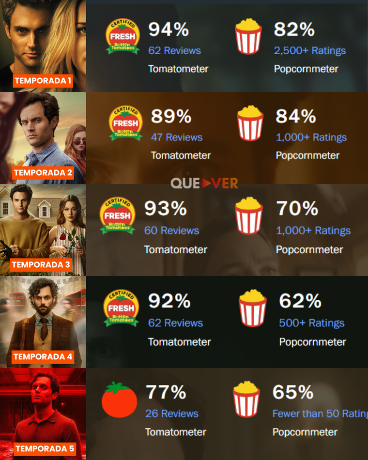 El puntaje de la quinta temporada de You en Rotten Tomatoes