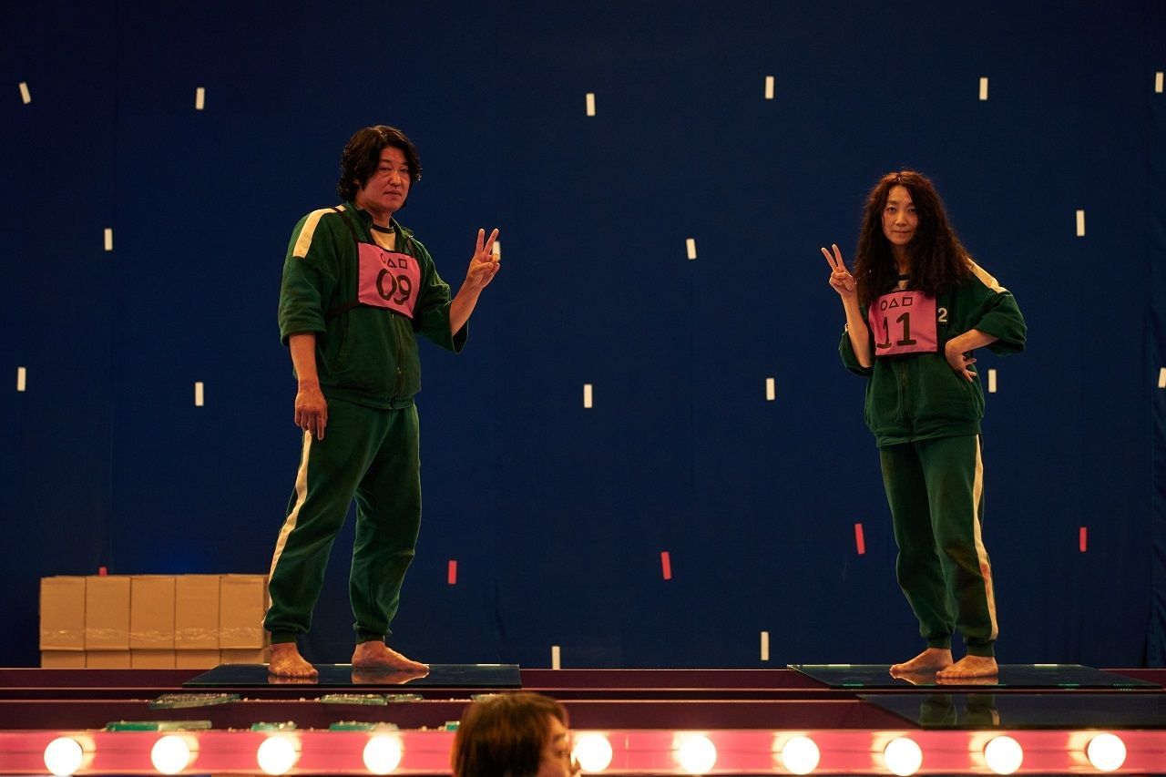 Otros que se divierten en el set son la N° 212 Mi Ryeong (Kim Joo Ryung) y el N° 101 Deok Soo (Heo Sung Tae). Ambos posan en el peligroso juego del camino de cristal, sin problemas, porque sus cristales no se han roto...aún.