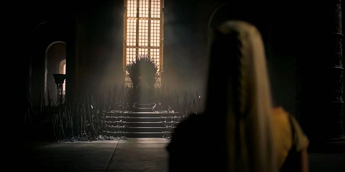El clip nos muestra a la Rhaenyra Targaryen (Emma D'Arcy), la legítima heredera, mirando de lejos el Trono de Hierro. El detalle es que este estrado es totalmente distinto al visto en GoT, ya que luce más amenazante y con camino de espadas a los lados. Esta versión probablemente sea la original, la forjada por Aegon I con el fuego de Balerion el Terror Negro.