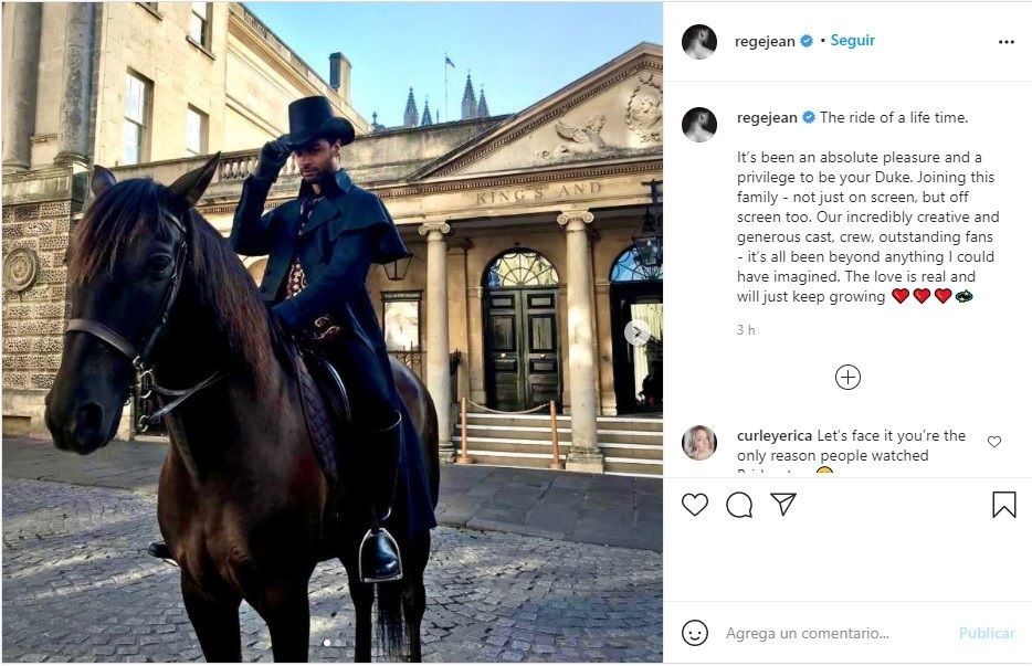 Por su parte, Regé-Jean compartió un emotivo mensaje en cuenta de Instagram que dice: “El viaje de tu vida. Ha sido un placer y un privilegio ser su Duque. Unirse a esta familia, no solo en la pantalla, sino también fuera de ella. Nuestro elenco, equipo y admiradores son increíblemente creativos y generosos. Todo ha ido más allá de todo lo que podría haber imaginado. El amor es real y seguirá creciendo".