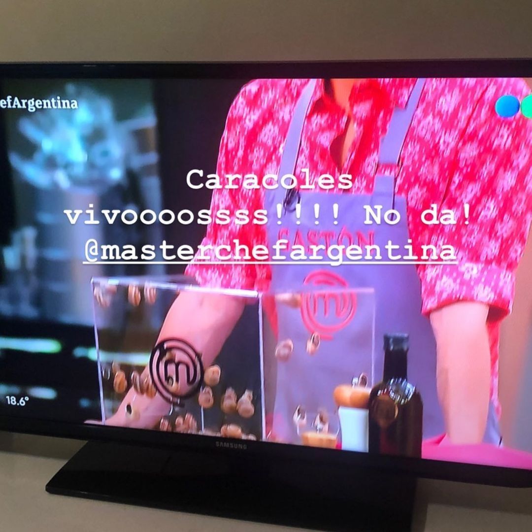 La cantante expresó su enojo en las redes sociales al ver cómo procedían a la preparación de los caracoles en agua hirviendo. "¿Caracoles vivos? ¿Y ver cómo se retuercen en agua hirviendo? Es mucho. No da @masterchefargentina no da….", escribió Sosa en su cuenta de Instagram.