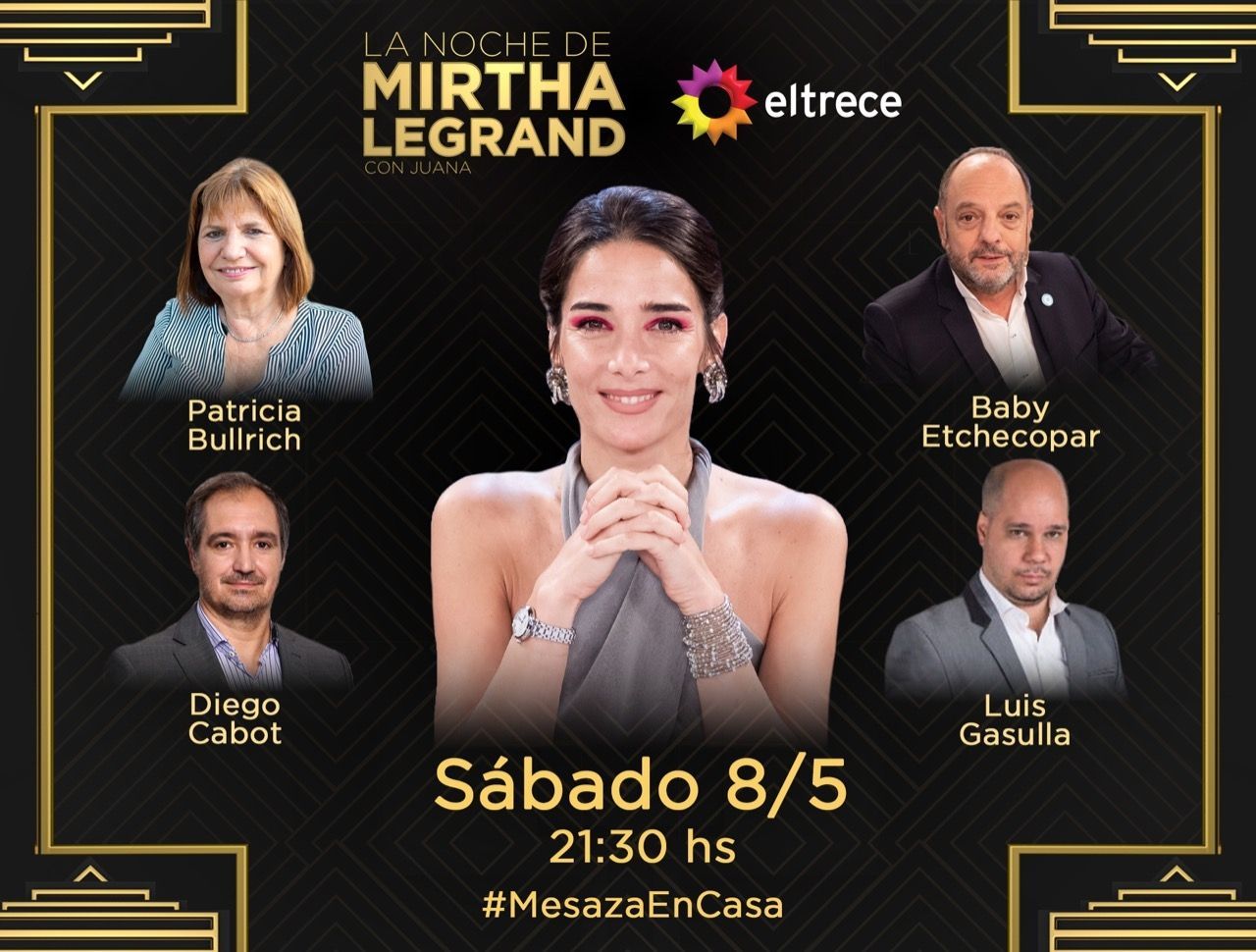 La noche de Mirtha contará con la presencia de Patricia Bullrich, actual presidenta del PRO y ex ministra de Seguridad durante el gobierno de Mauricio Macri. Además estarán presentes grandes figuras del periodismo como Diego Cabot, Luis Gasulla y Baby Etchecopar.