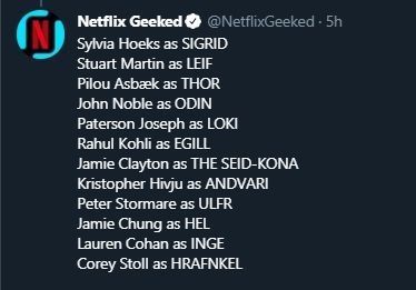 En el elenco de la serie de la serie destacan los nombres de Paterson Joseph, Sylvia Hoeks, Pilou Asbaek y Corey Stoll. La holandesa Sylvia Hoeks interpretará a Sigrid, mientras que los británicos Stuart Martin y Paterson Joseph le darán voz a Leif y Loki, respectivamente; Pilou Asbæk, actor danés, será Thor; el australiano John Noble interpretará a Odin y Rahul Kohli, de ascendencia india, interpretará a Egill.