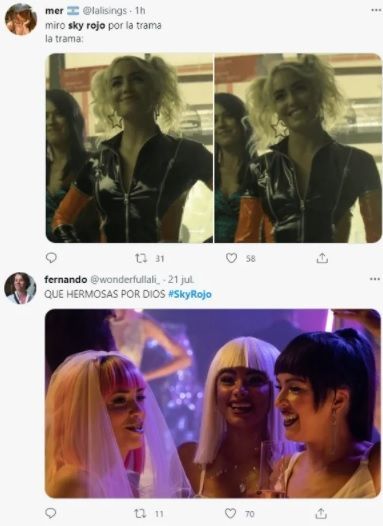Como suele suceder tampoco faltaron los haters de Sky Rojo o quienes la comparan con La Casa de Papel, la otra gran obra de Alex Pina. Para muchos la serie protagonizada por Lali Espósito es de una calidad inferior respecto a la de la banda de atracadores y a diferencia de quienes disfrutan las aventuras de las tres prostitutas que escapan de sus violentos proxenetas, estos expresan en las redes sociales su descontento con memes y reacciones negativos hacia la actriz o la serie.