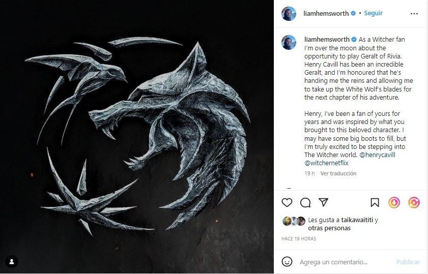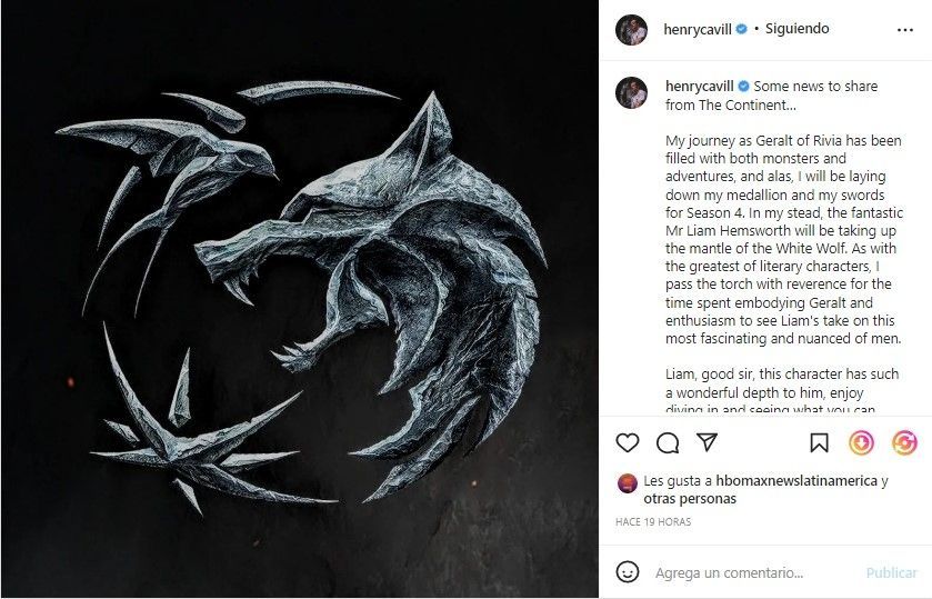 En el posteo que hizo hace unas pocas horas dijo que dejará su espada y su medallón para esta cuarta temporada. Por otro lado, otra noticia que impactó fue que Liam Hemsworth lo reemplazará y se convertirá en Geralt. Cavill le deseó muy buena suerte y confirmó que tiene toda la confianza en él y que aproveche de este complejo personaje ya que tiene mucha historia para contar.