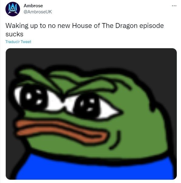 En las últimas horas, los fanáticos se volcaron a las redes sociales donde manifestaron su tristeza por la ausencia de nuevos episodios de House of the Dragon. Desde luego, los memes no se hicieron esperar y las redes rápidamente se llenaron de las reacciones del fandom que no encuentra consuelo en ninguna otra ficción del medio.