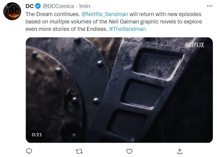 Si bien por el momento no hay confirmación oficial por parte del streamer, en horas de la tarde del día miércoles, la cuenta oficial de Twitter de DC Comics realizó una publicación que decía: "El sueño continúa. [The Sandman] regresará con nuevos episodios basados en los volúmenes de la novela gráfica de Neil Gaiman para explorar más historias de los Eternos".