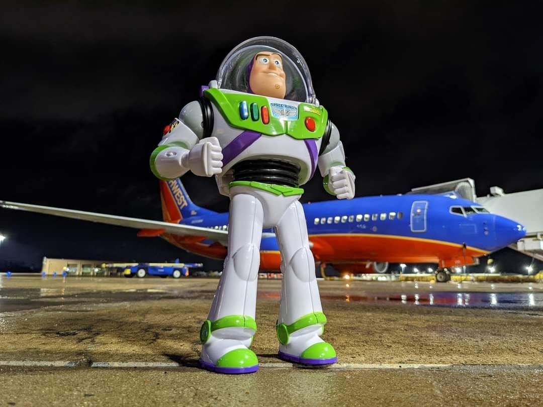 Para hacer que la situación pareciera salida de la pelÃcula de Pixar, Jason se encargó de tomar fotos a Buzz en la plataforma, dentro de la cabina del avión y en el aeropuerto.