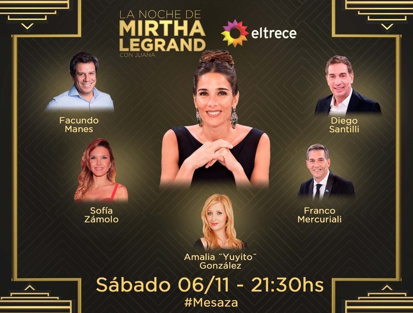 Esta noche desde las 21.30hs, Juana recibirá de invitados a los candidatos a legisladores nacionales, Diego Santilli y Facundo Manes. Además estarán presentes, el periodista Franco Mercuriali, la modelo Sofía Zámolo, y la ex vedette Amalia "Yuyito" González, cuyo nombre ha vuelto a resurgir tras la serie de Maradona, Sueño bendito, la que sugiere que tuvo algún romance con la leyenda del fútbol.