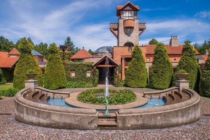 En las afueras, dicho lugar cuenta con un jardín muy grande que está acompañado por una bandeja de agua. Con respecto a la parte interna de la mansión, esta posee un gran recibidor, una cocina muy moderna, comedor, sala de estar, despacho, entre otras cosas.