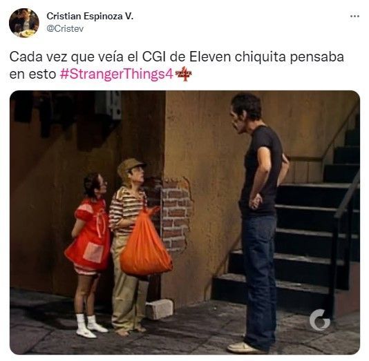 “Cada vez que veía el CGI de Eleven chiquita pensaba en esto“ dice otro de los memes con una imagen de un mini Chavo (haciendo referencia a las escenas del pasado de la protagonista). Por supuesto, que las muertes de los adolescentes a manos del nuevo villano también dieron lugar a varios chistes.